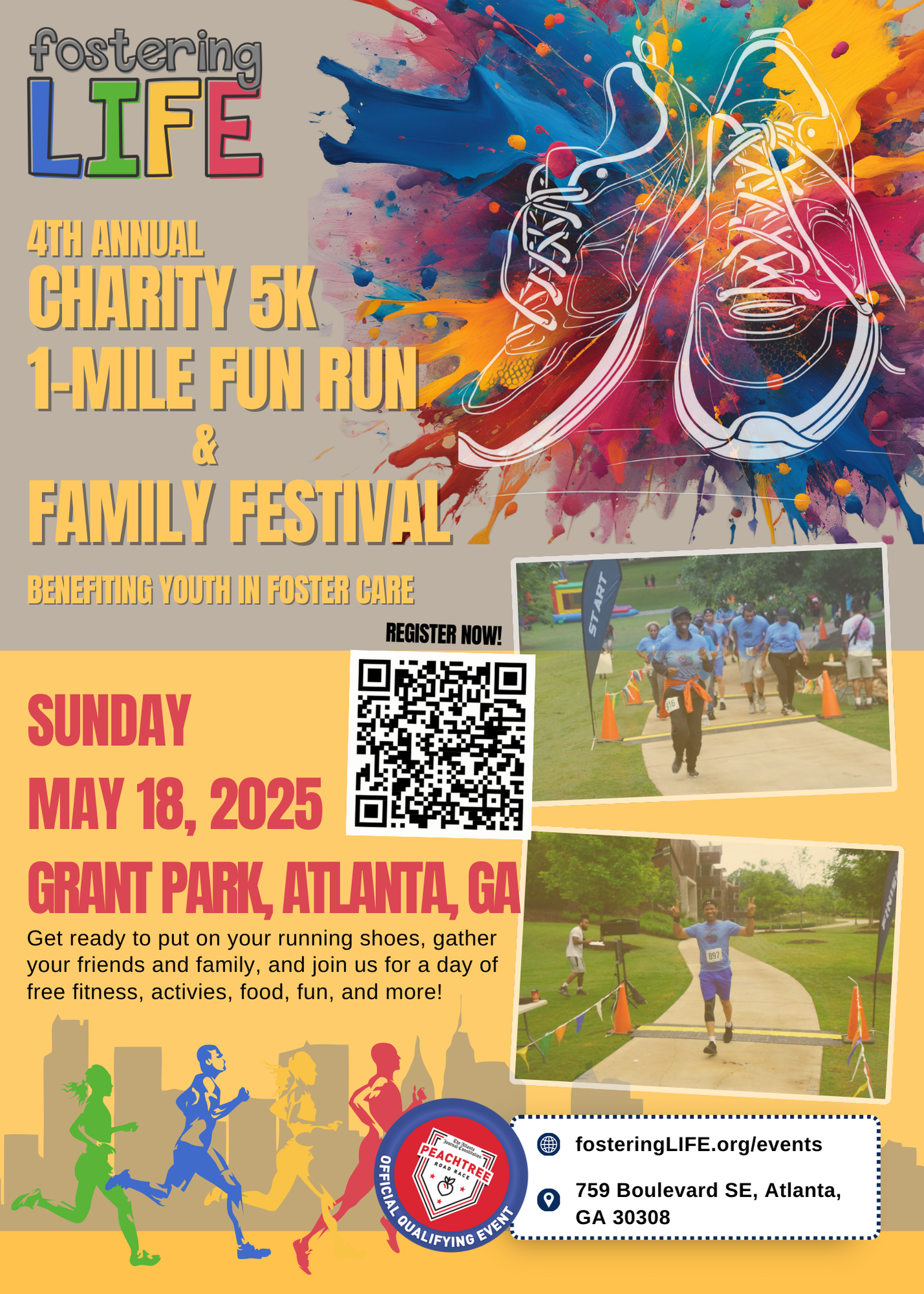 Please join us as we raise awareness for the needs of youth in foster care during National Foster Care Month with our 3rd Annual Fostering LIFE Day 5K and 1-mile Fun Run/Walk and festival at Grant Park on Sunday, May 19, 2024. Choose from the 5K or 1-mile Fun Run. Join a team, and invite family and friends to have fun while supporting a worthy cause. Virtual options are available.